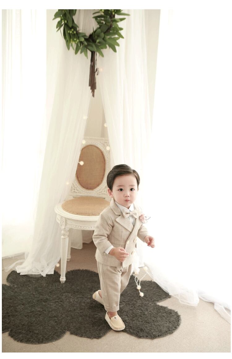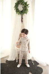 ジャケット+ベスト+パンツ+長袖Yシャツ+蝶ネクタイの5点セットです。