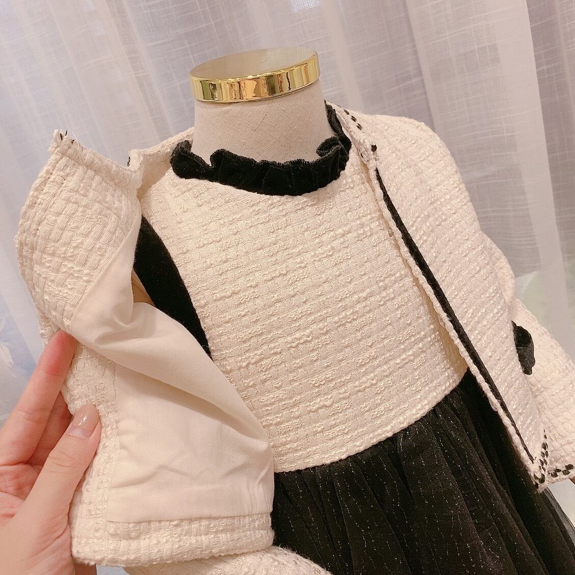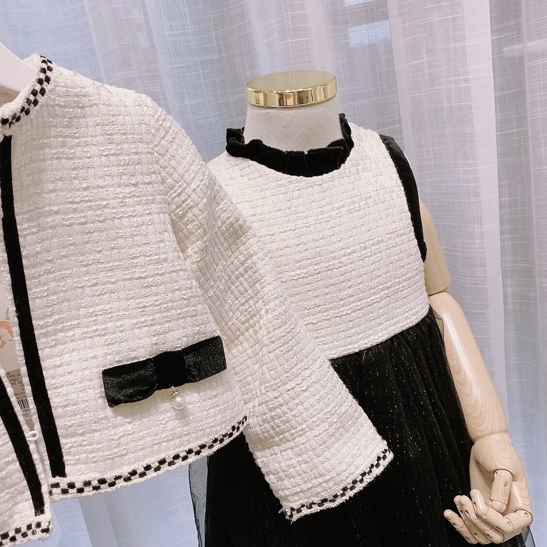 女児 キッズ ジャケット+ワンピースのセットアップです。