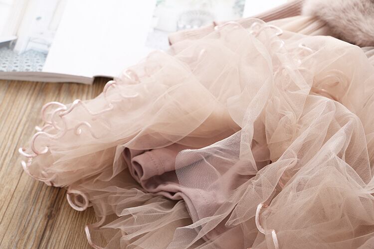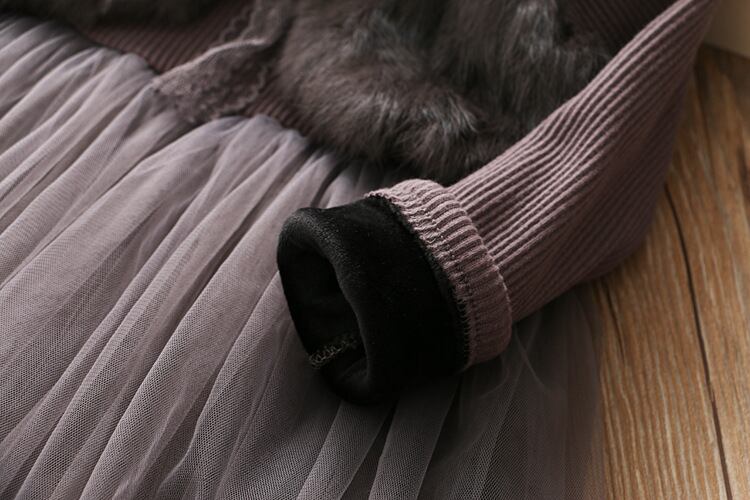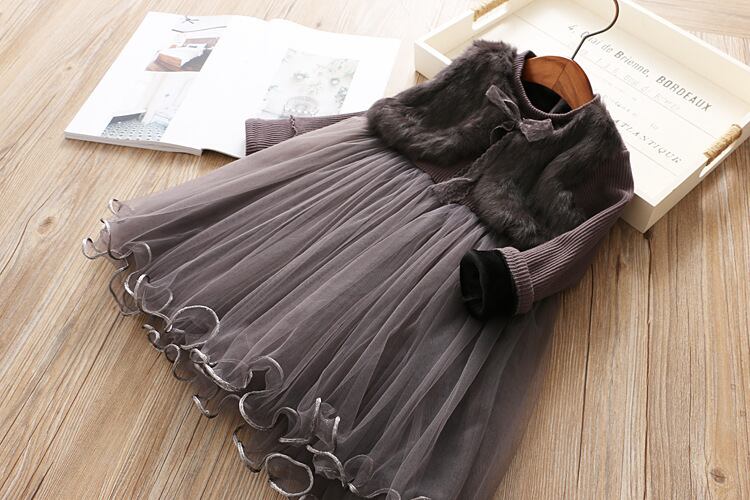 フェイクファーのベスト+長袖ワンピースの2点セットです。